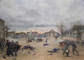 | Keywords: CHALON Eugène, Attaque de Dole par les Prussiens, 21 janvier 1871, 1889.jpg artwork fr Tableau peint en 1889 par Eugène CHALON Il représente l'assaut mené par les Prussiens sur la ville de Dole Jura le 21 janvier 1871 Il est actuellement conservé au musée des Beaux-Arts de Dole 1889 Musée des beaux-arts de Dole Musée des beaux-arts de Dole Eugène Chalon 1829-1911 oil on canvas cm 73 2 100 CH 419 M0347000987 object history Date acquisition 1911 Custom license marker 2012 09 30 PD-old-100 Uploaded with UploadWizard Histoire de Dole Eugène Chalon Musée des beaux-arts de Dole Paintings of Franco-Prussian War French soldiers in art |