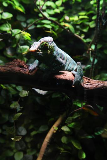 Keywords: chameleon green leaves lizard nature