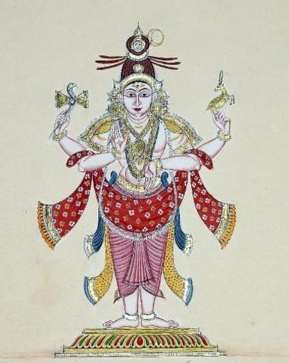 Keywords: Chandrashekhara.jpg en Candraśekharamūrti stands on a low lotus plinth with his weight carried evenly on both feet On the left side of his topknot in the immediate proximity of Ganga's face is the crescent moon In his upper right and left hands the god carries the damaru and the mriga his lower right hand is in abhaya and his lower left in varada mudra Candraśekharamūrti is dressed in a dhoti with side sashes an angavastra is draped on his elbow and he wears the usual ornaments http //www britishmuseum org/research/search_the_collection_database/search_object_details aspx objectid 3058363 partid 1 output Places 2f 2fOR 2f 2f41361 2f 2f41361-2-20 2f 2fPainted+in+Thanjavur 2f 2f 2f 2f 2f 2f orig 2fresearch 2fsearch_the_collection_database 2fadvanced_search aspx currentPage 3 numpages 10 unknown author ~ 1820 PD-art Chandrashekhara