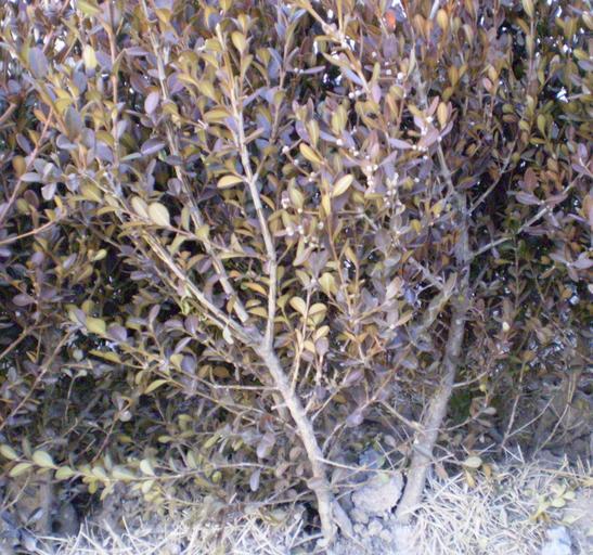 Keywords: Changnyeong Buxus microphylla side.jpg Winter foliage of Buxus microphylla in Changnyeong Culture Park Changnyeong Gyeongsangnam-do South Korea Own 2007-01-27 Taken by User Visviva and released into the public domain Buxus microphylla Changnyeong