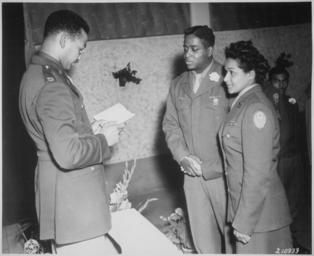 | Keywords: "Chaplain William T. Green reads the benediction at the marriage ceremony of Pfc. Florence A. Collins, a WAC of the 6888 - NARA - 531314.jpg  Scope and content General notes 531314 Local identifier 111-SC-210939 Department of Defense Department of the Army Office of the Chief Signal Officer 09/18/1947 - 02/28/1964 NARA-Place Rouen Seine-Maritime Département de la inhabited place 4193875 49 433 1 083 <br /> Still Picture Records Section Special Media Archives Services Division NWCS-S National Archives at College Park 8601 Adelphi Road College Park MD 20740-6001 1945-08-19 Record group Record Group 111 Records of the Office of the Chief Signal Officer 1860 - 1985 Record group ARC 440 Signal Corps Photographs of American Military Activity compiled 1754 - 1954 Series ARC 530707 File unit File unit ARC Variant control numbers NAIL Control Number NWDNS-111-SC-210939<br /> Select List Identifier AFRO/AM LIST 205 Other versions <gallery> File Chaplain_William_T _Green_reads_the_benediction_at_the_marriage_ceremony_of_Pfc _Florence_A _Collins _a_WAC_of_the_6888_-_NARA_-_531314 tif tif File Chaplain_William_T _Green_reads_the_benediction_at_the_marriage_ceremony_of_Pfc _Florence_A _Collins _a_WAC_of_the_6888_-_NARA_-_531314 jpg jpg </gallery> NARA-cooperation PD-USGov African American history of the 1940s African American soldiers World War II forces of the United States Women's Army Corps Wedding ceremonies |