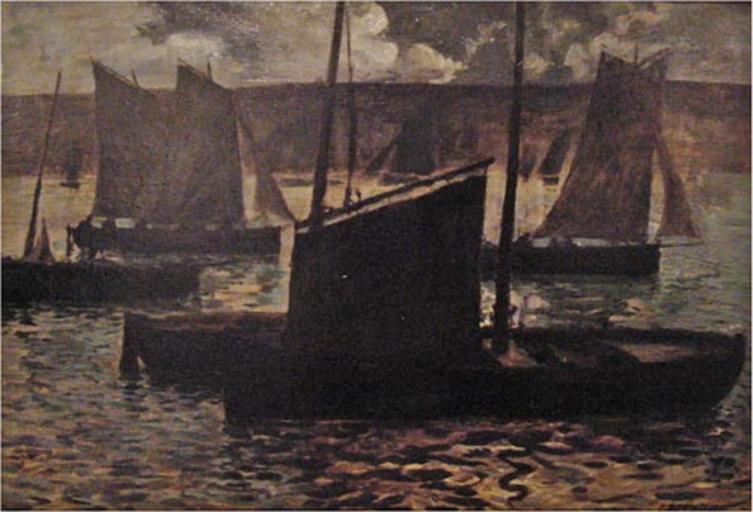 | Keywords: Charles cottet rayons.jpg Harbor Scene Fishing Fleet Rayons du Soir Brittany oil on canvas 22 x32 32 x42 framed s l r Ch Cottet Exibited at the Paris Salon of 1889 gallery hermain 1889 Creator Charles Cottet PD-Art Post-Impressionist paintings Charles Cottet PD-Art |
