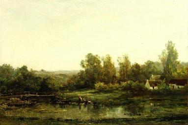 Keywords: Charles-François Daubigny - Les blanchisseuses (1870s).jpg Artwork Creator Charles-François Daubigny 1870-1874 oil canvas cm 53 80 Institution Frick Collection Not on view accession number 1896 1 32 object history credit line Henry Clay Frick Bequest exhibition history http //collections frick org/view/objects/asitem/items 0040 146 Frick Collection PD-old-100 Paintings by Charles-François Daubigny Paintings in the Frick Collection Landscape paintings of France 1870s landscape paintings Paintings of landscapes with washerwomen 19th-century paintings |