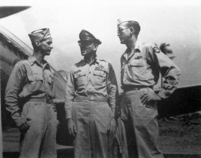 Keywords: blackandwhite monochrome black and white Catalog #: 15_000003 Title: Charles M. Daniels Collection Photo Aircraft/Subject: Major William Shomo Year Photo Taken: Daniels Album Name: 71st Tactical Reconnaisance Group Reunion, 10/1990 Houston, TX Notes From Album: Major William Shomo (left), General Ennis Whitehead (center), and Col. William Sams. Repository: San Diego Air and Space Museum Archive Catalog #: 15_000003 Title: Charles M. Daniels Collection Photo Aircraft/Subject: Major William Shomo Year Photo Taken: Daniels Album Name: 71st Tactical Reconnaisance Group Reunion, 10/1990 Houston, TX Notes From Album: Major William Shomo (left), General Ennis Whitehead (center), and Col. William Sams. Repository: San Diego Air and Space Museum Archive