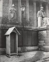 Keywords: Charles Marville, Corps Législatif, façade sur le quai, 1878.jpg Photograph en Single lamp on iron lamp stand incorporated into iron railing fence in front of building statue of a seated figure in right background statue of goddess Athene left background Wooden sentry box in front of railing fence depicted people depicted place Palais Bourbon Paris France 1878 photographic print mounted on cardboard albumen silver 35 5 x 26 5 cm accession number H2011 78/84 SLVIC-digitalimage 109522 H2011 78/84 Title on contents page Candélabre lanterne carrée Corps Législatif Institution State Library of Victoria object history exhibition history credit line Gift; Government of France; 1881 Information field In collection Ville de Paris Collection des appareils d'éclairage au gaz établis sur la voie publique PD-100 Collection des appareils d'éclairage au gaz établis sur la voie publique Images of Paris from the State Library of Victoria North facade of the Palais Bourbon Historical images of Palais Bourbon Fences in Paris Sentry boxes in Paris |