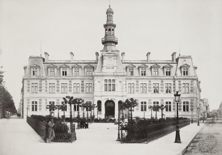Keywords: Charles Marville, Mairie du 12e Arrondissement.jpg Looking towards facade of Town Hall of Paris XIIe arrondissement three storey building with tower and viewing platform shrubbery along railing fence in wedge shape in front of building man leaning against railing fence lamposts along path on right circa 1850 “70 1 photographic print mounted on cardboard albumen silver Size cm 25 37 Institution State Library of Victoria object history exhibition history credit line Gift; Government of France; 1880 SLVIC-digitalimage 134344 H88 19/2/82a Photographer not stated but possibly Charles Marville <br>Title inscribed in black ink on folio page beneath image <br>Undated dates assigned from Haussman's renovation of Paris accession number H88 19/2/82a PD-100 Town hall of Paris 12e arrondissement Charles Marville - Photographic views of Paris Images of Paris from the State Library of Victoria |