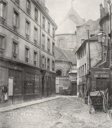 | Keywords: Charles Marville, Rue de Breteuil, de la rue Vaucanson, ca. 1853–70.jpg Looking along cobbled street with narrow path four storey building on left shop fronts on ground level church visible between gap in buildings hand cart on right another in background depicted people depicted place circa 1853 “70 photographic print mounted on cardboard albumen silver 24 8 x 26 8 cm Institution State Library of Victoria object history exhibition history credit line Gift; Government of France; 1880 Photographer unknown but probably Charles Marville Undated dates assigned from time of Haussman's renovation of Paris Title hand inscribed on label adhered to portfolio page beneath image accession number H88 19/32 SLVIC-digitalimage 115431 H88 19/32 Information field In collection Photographic views of Paris PD-100 Charles Marville - Photographic views of Paris Images of Paris from the State Library of Victoria Rue Vaucanson Paris Rue de Breteuil Paris Hand carts in Paris Square du Général-Morin Paris Historical images of Prieuré Saint-Martin-des-Champs |