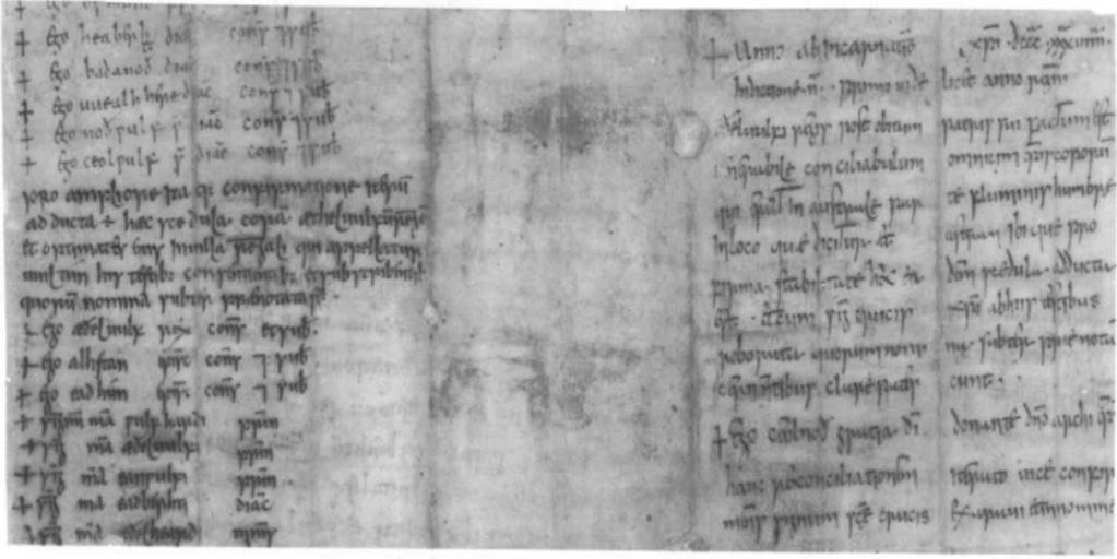 | View Original: | Charter of King Æthelwulf of Wessex, 839 (British Library, Cotton Augustus ii. 20 dorse) - detail.jpg (1003x502) | |||