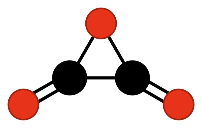 Keywords: Chemfm oxalic anhydride.svg Molecular diagram of the hypothetical compound oxalic anhydride For the oxocarbon Wikipedia article Own 2009-07-14 Jorge Stolfi Oxalic anhydride