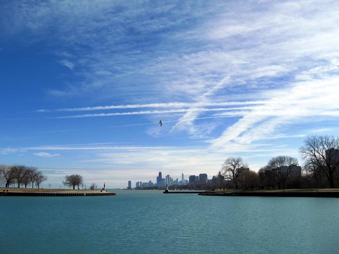 Keywords: chemtrails sky blue contrails chicago clouds water lake