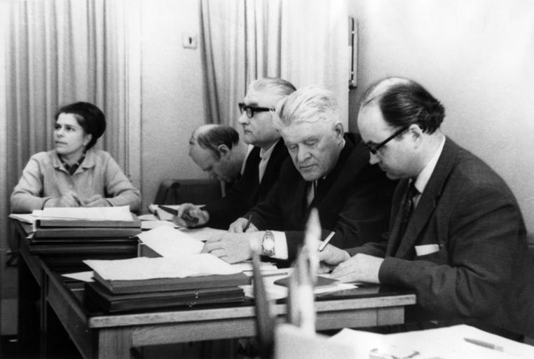 Keywords: Cherenkov in state comission.jpg disputed en Cherenkov works in state examination comission ru обелевский лау еат Павел Алексеевич Че енков аботает в Госуда ственной экзаменационной комиссии Я Я 1950 год Cc-zero 1948 establishments