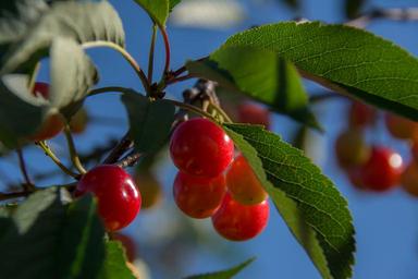 Keywords: cherries branch cherry red agriculture foliage tree