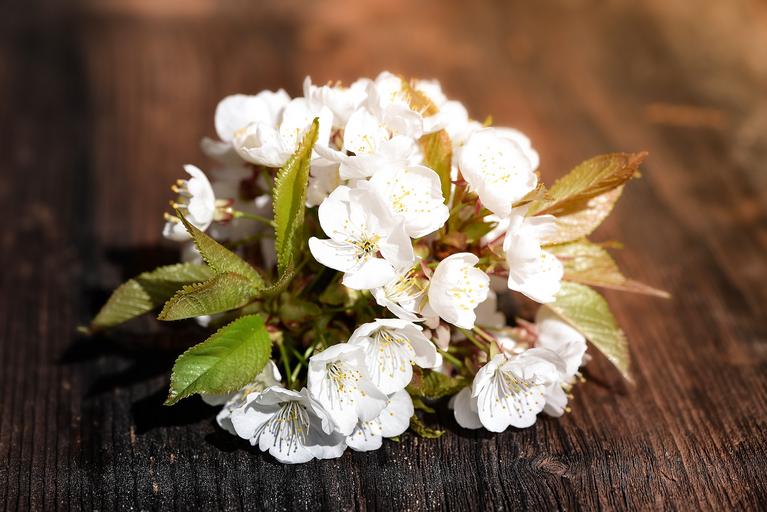 Keywords: cherry blossom flowers white flowers white spring wood close