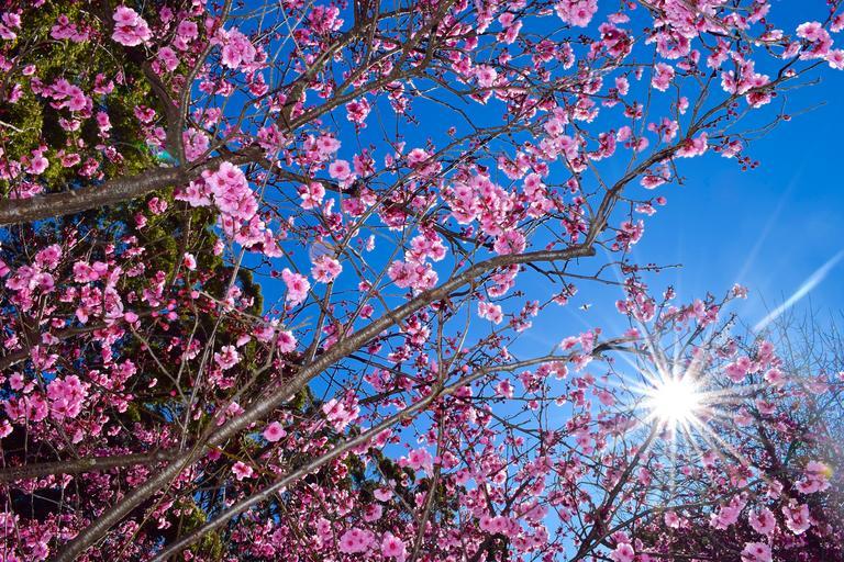 Keywords: cherry blossom tree nature spring sunny blue sky bright