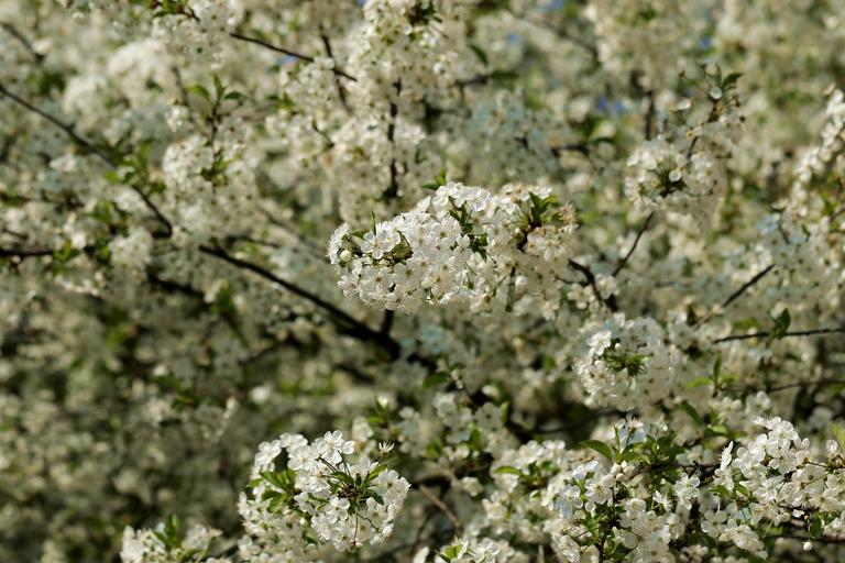 Keywords: cherry cherry blossom spring tree flowers blooming garden branches green white nature