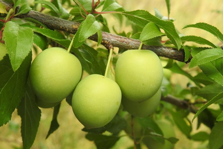 Keywords: cherry plum yellow plums fruit tree branch fruit immature prunus cerasifera