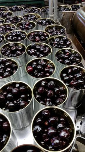 Keywords: cherry produce food canning processing process canned fruit canned conveyor belt conveyor bing cherry canned cherry maroon bing industrial container commercial