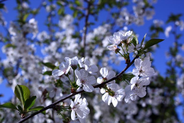 Keywords: cherry white flowers blue background white blue cherry blossom flower nature