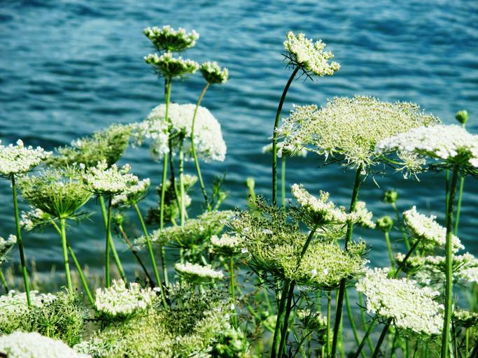 Keywords: chervil grassland plants flowers white water lake