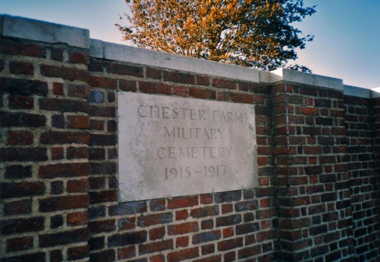 | Keywords: Chester Farm Military Cemetery - Entrance Stone - Redvers.jpg Chester Farm Military Commonwealth War Graves Commission cemetery in Belgium Own 13 September 2004 published 9 October 2006 User Redvers Own work all rights released Chester Farm Cemetery |