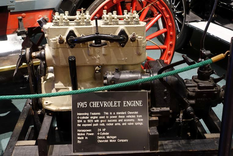 | Keywords: Chevrolet engine, 1915, made by Chevrolet Motor Co., Detroit, 24 HP, 4 cylinder - Luray Caverns Car and Carriage Museum - Luray, Virginia - DSC01284.jpg en Exhibit in the in the Luray Caverns Car and Carriage Museum Lurary Virginia USA 2015-07-11 11 38 08 own Daderot other versions cc-zero Collections of the Luray Caverns Car and Carriage Museum Chevrolet engines | ||||