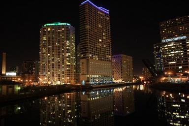 Keywords: chicago river night view lights architecture buildings water reflections nights downtown cityscape structures illinois