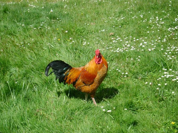 Keywords: chicken fowl poultry bird red nature rooster natural rural green cockerel