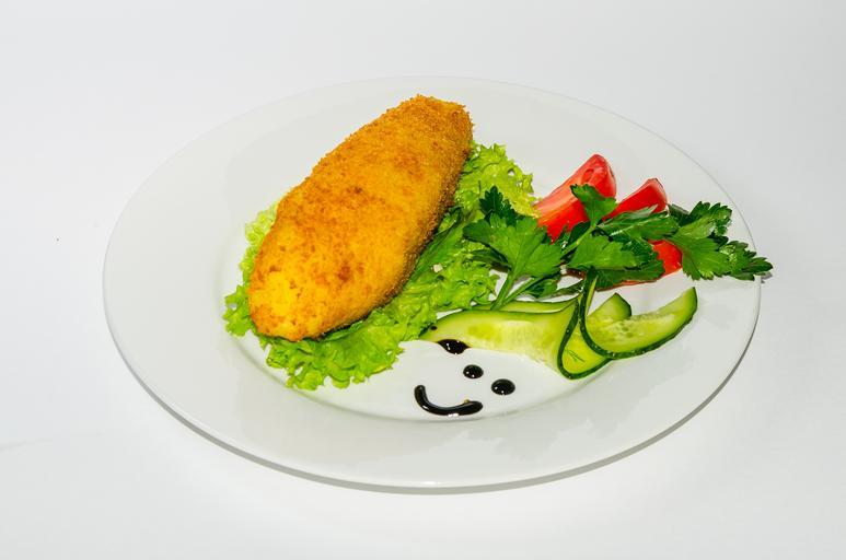 Keywords: chicken salad meat fried tomato dill food lunch useful dish vegetables taste use delicious colorful plate cherry tomatoes the tomatoes on the branch sliced cucumbers