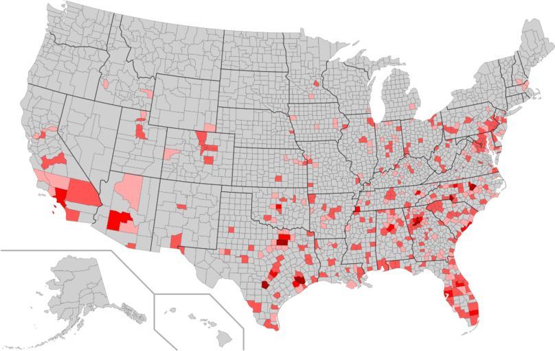 | Keywords: Chickfila location distribution.svg en Distribution of Chick-fil-a locations in the U S by county Light pink 1 store<br> Pink 2-9 stores<br> Red 10-19 stores Dark red 20+ stores 2012-07-30 http //en wikipedia org/wiki/File USA_Counties_with_FIPS_and_names svg <br> http //find mapmuse com/map/chick-fil-a Location Data haha169 Coloring<br> Mr Matté and Kbh3rd Map Custom license marker 2012 07 30 Uploaded with UploadWizard Fast-food maps of the United States Chick-fil-A maps | ||||