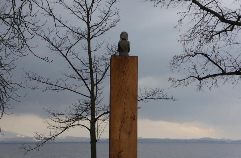 Keywords: chiemsee sculpture bavaria sit look silent rest grey winter mood melancholy figures statue