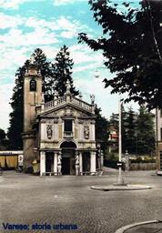 Keywords: Chiesa della Madonnina in Prato. La facciata, realizzata tra il 1686 e il 1687, è addossata ad un preesistente edificio quattrocentesco (si vede a sinistra la cappella laterale adornata in alto dal tipico motivo a denti di sega caratteristico dell'architettura lombarda gotica). Il campaniletto è stato modificato e sopraelevato nel 1722. varese biumoinferiore |