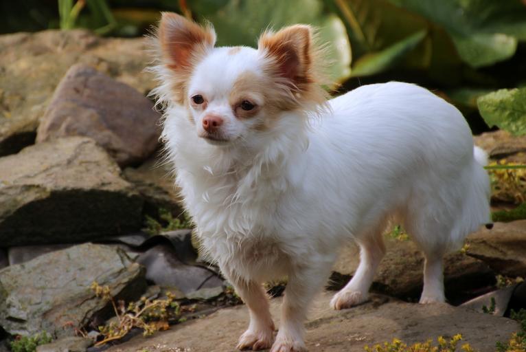 Keywords: chihuahua german longhaired pointer dog animal pet fur white brown curious cute