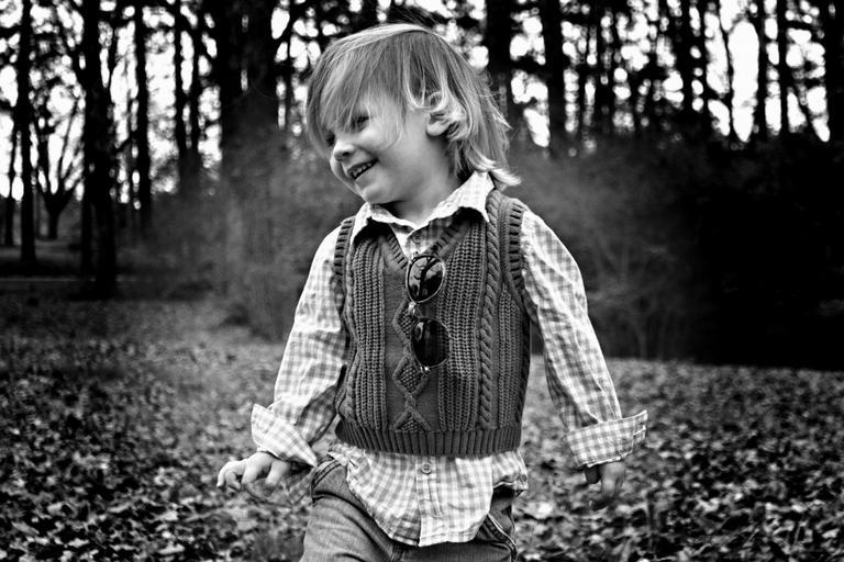 Keywords: child boy toddler kid childhood male preschooler happy person fun happiness smiling joy black and white portrait woods forest laughing smile cheerful outdoors brother son