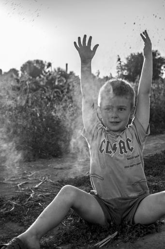 Keywords: child dust play smile innocence dirty light
