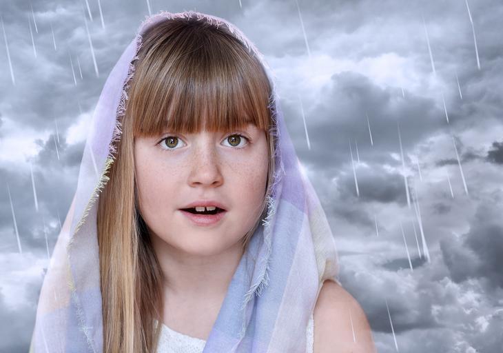 Keywords: child girl face clouds rain