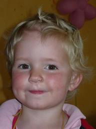 Keywords: child girl face smile cheeky blond nose rotznase sniff