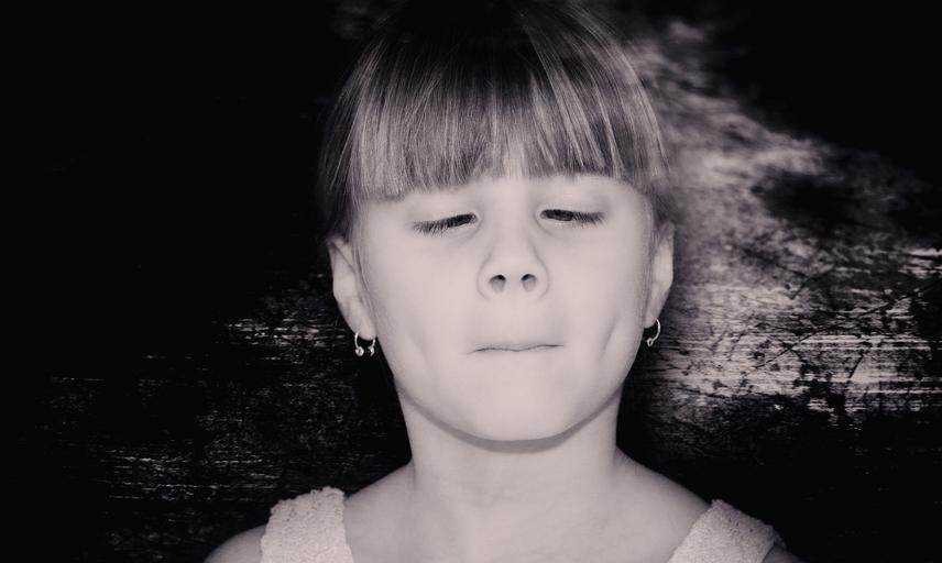 Keywords: child girl face squint view black and white recording