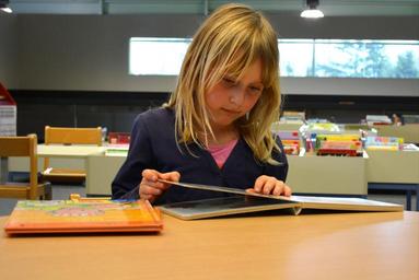 Keywords: child girl people library books read