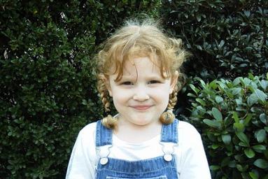 Keywords: child girl pigtails braids overalls cute grin sweet little childhood smile happy play young face small eyes