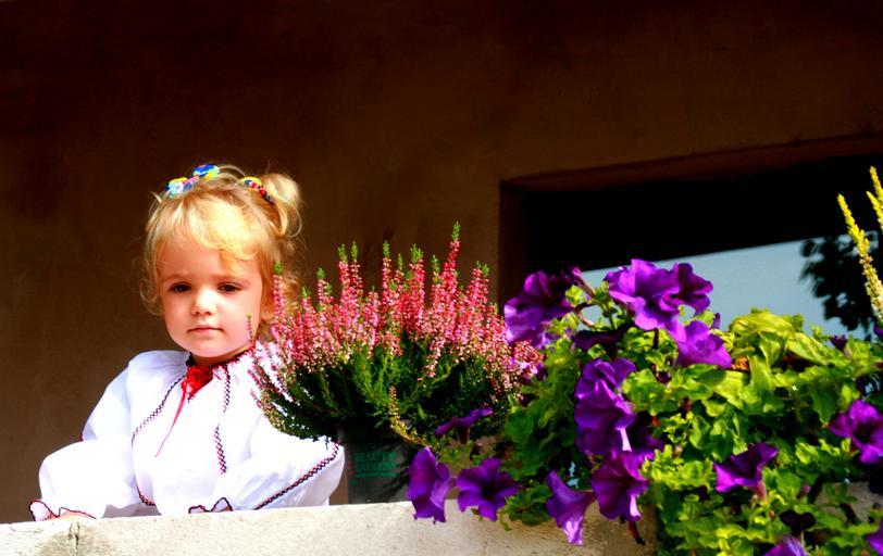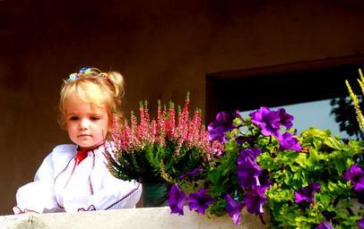 Keywords: child girl tradition peasant woman flowers balcony innocence coloring