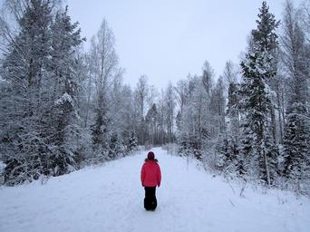 Keywords: child man heels girl finnish sky forest snow winter back watch cold