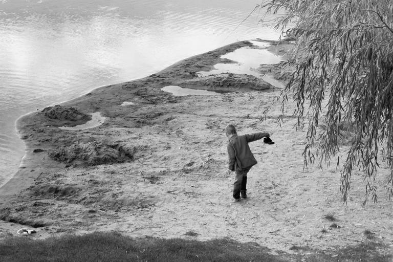 Keywords: child play beach leisure carefree innocent bank sand play outside playing child alone in the nature
