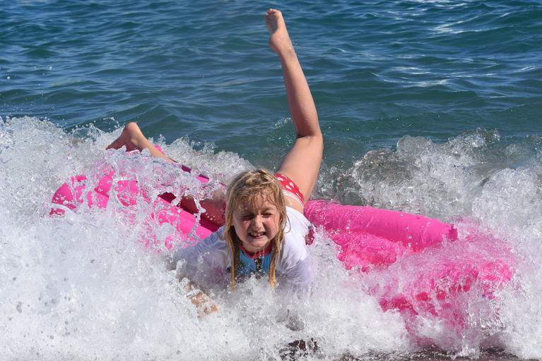 Keywords: child waves people sea girl uv-resistant clothing holiday ocean action