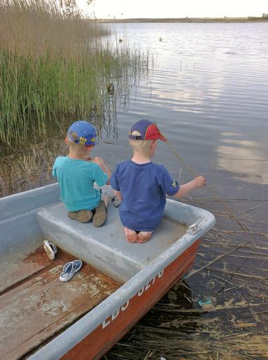 Keywords: children boot lake fish nature catch fish boys water play