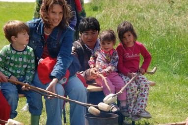 Keywords: children bread baking people stick family