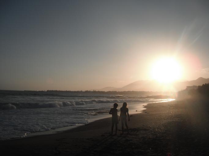 Keywords: children summer sea wave sunset beach abendstimmung harmony rest atmospheric