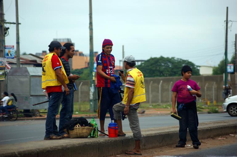 Keywords: children young people clean road auto paraguay south america