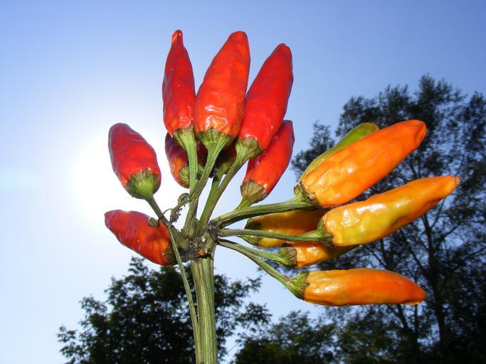 Keywords: chilli hot pepper red sunlight food drink plants vegetables