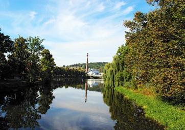 Keywords: chimney city sand landscape river trip nature parking water reflection green