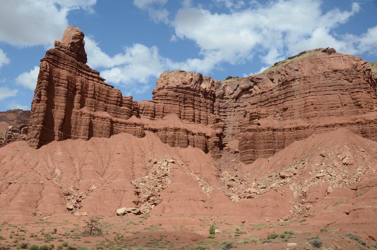 Keywords: chimney rock utah capitol reef national park the west national park landscape scenery rocks rock wall rock layers formations rock formations sky sand stone sand erosion erosional tourist attraction rock formation sandstone rock